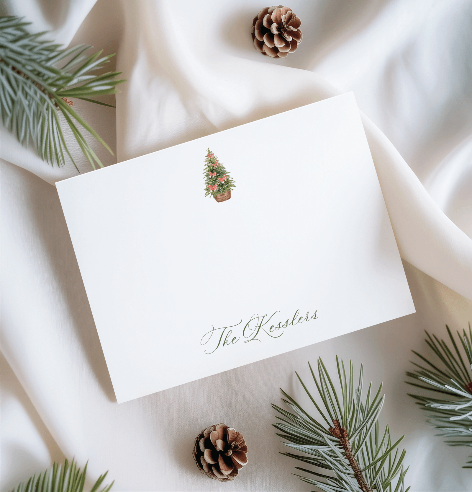 Add a touch of festive elegance to your holiday correspondence with our personalized note cards. Each A2-size flat card features a watercolor Christmas Tree illustration at the top – exclusively hand painted for our shop!