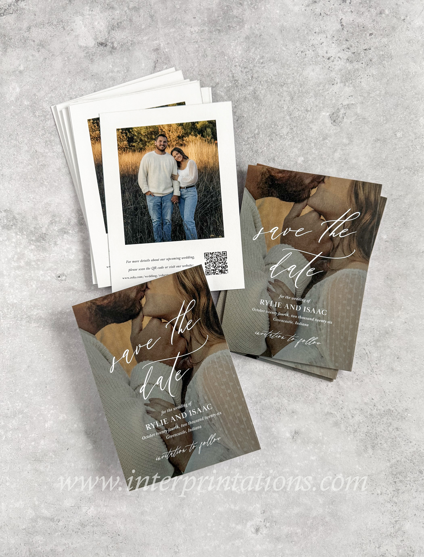 Printed on luxe white matte cardstock, this design feels both effortless and refined — ideal for couples looking for a simple photo save the date with elevated details.